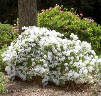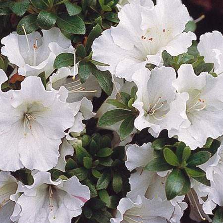 Autumn Moonlight Encore Azalea Shrubs are fast-growing upright azaleas with light green foliage that highlight the white semi-double ruffled flowers.