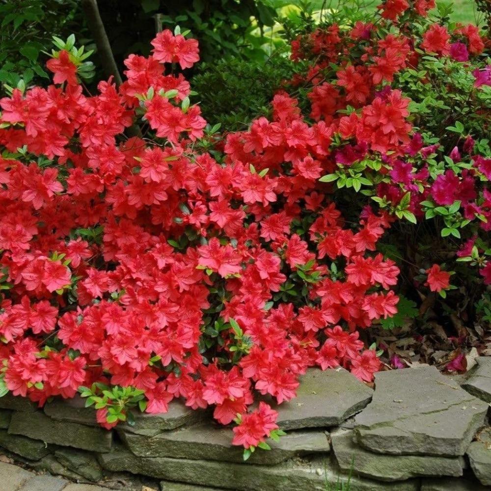 Azalea Buccaneer Shrubs are a stunning addition to any garden or landscape. Their bold red flowers create instant curb appeal when they bloom throughout the spring, summer, and fall. The funnel shaped scarlet blooms stand out against the evergreen foliage. Azalea Buccaneer Shrub is a tidy and easy to care for foundation or accent plant that is a must-have for your landscape.
