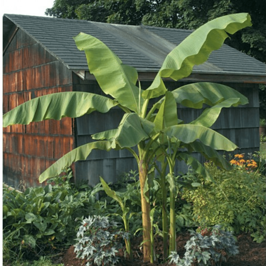 Banana ‘Musa basjoo’ is a hardy herbaceous perennial plant known for its large paddle-shaped foliage. Native to Japan, this plant grows vigorously and can reach heights up to 14 feet. Although Japanese Banana is a tropical plant, it's able to withstand below freezing temperatures with the proper mulching.