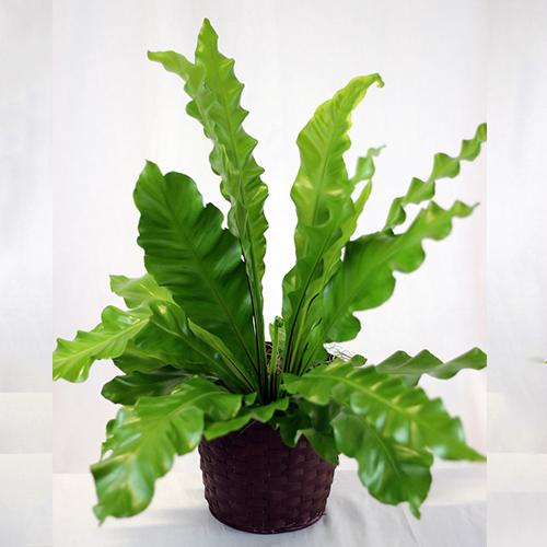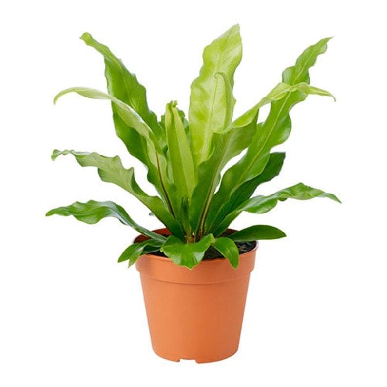 The Bird's Nest Fern differs from many ferns in appearance due to its spear-shaped leaves with wavy edges rather than the typical feather or palm-like fronds of other ferns. Easily grown indoors in any low-light room or office.