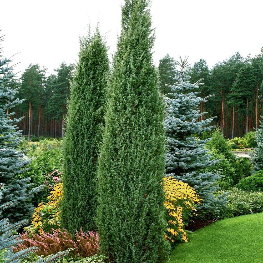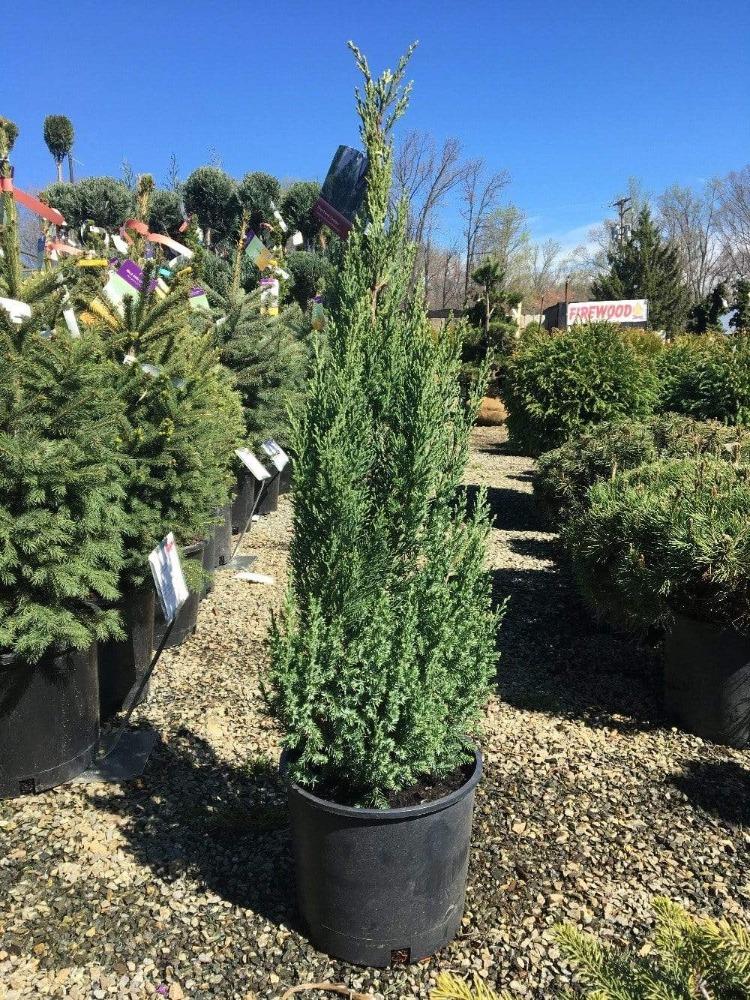 Blue Point Juniper (Juniperus chinensis 'Blue Point') is a densely branched evergreen tree with a naturally pyramidal growth habit. The blue-green foliage of the Blue Point Juniper stays consistent year-round and requires little to no maintenance once established. This selection is drought tolerant, deer resistant, adaptable to many soil types, and very easy to grow. Blue Point Juniper makes an excellent low to mid-height privacy screen and investing in landscaping is sure to add value to your property.