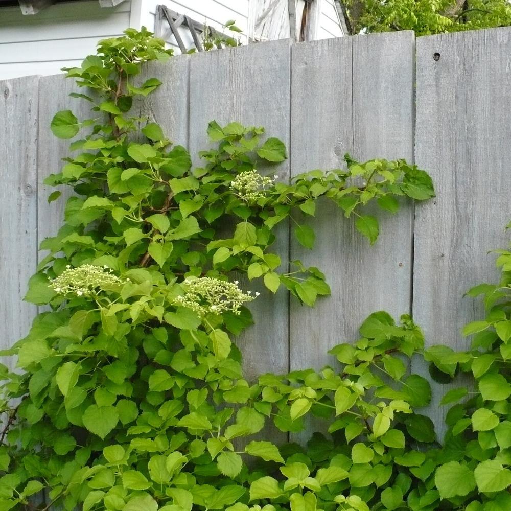 Climbing Hydrangea Vines (Hydrangea anomala petiolaris) are a unique departure from the standard hydrangea. Large, fragrant clusters of creamy white flowers pop out of this twisting vine in May and June and are very attractive to wandering butterflies. No trellis is needed to grow this climbing vine, as it has the ability to cling to a concrete wall, tree, or almost any surface using its aerial rootlets.