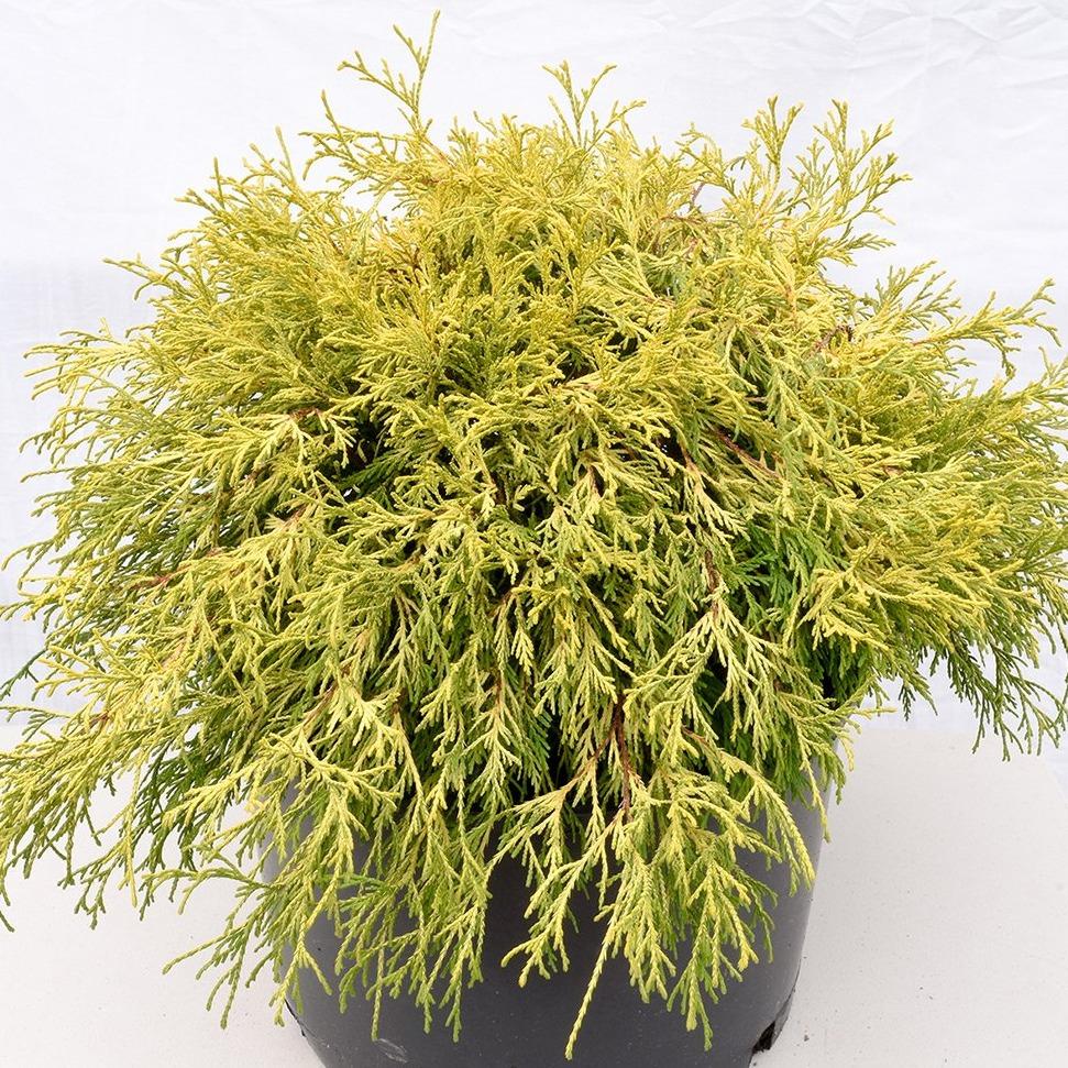 Cypress Gold Thread Shrubs or Chamaecyparis pisifera 'Filifera Aurea' hold their brilliant golden yellow color very well in the heat and humidity of summer. This plant produces bright golden yellow thread-like evergreen foliage on a compact, spreading, mounding shrub.