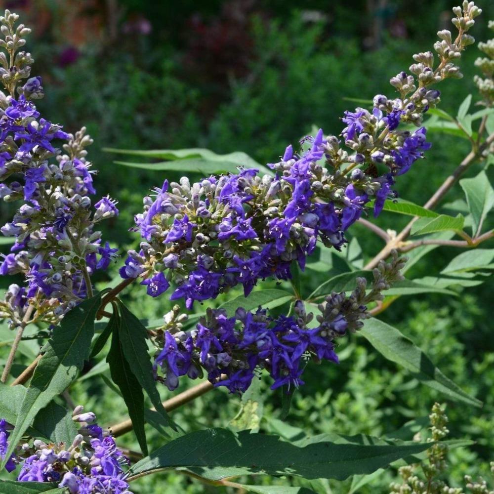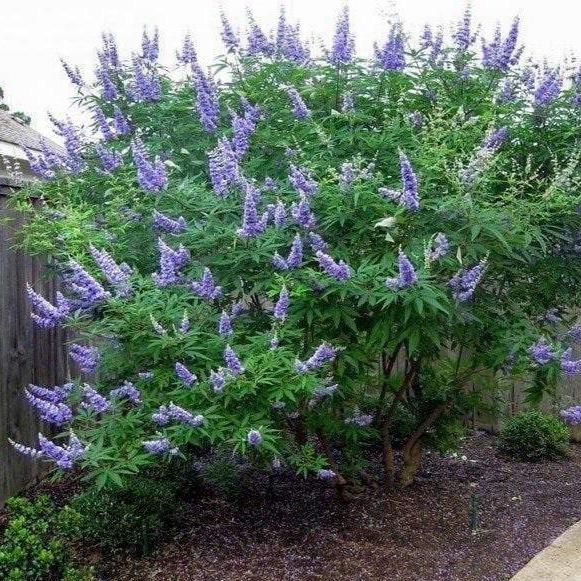 Delta Blues Vitex (Vitex agnus-castus Delta Blues) is a fast-growing, large flowering shrub or flowering tree that produces prolific lavender-blue flower spikes. The bright blue flowers make a striking contrast to the bright green foliage and their fragrance is irresistible to hummingbirds, butterflies, and pollinators. It has a rounded growth habit, prefers sunlight, and works well as a border planting. Similar to a crape myrtle, Delta Blues Vitex shrubs are multi-trunked with a similar mounding growth habit. When you buy your Delta Blues Vitex shrub online, plant it somewhere in your yard with a lot of space where it can grow and thrive.