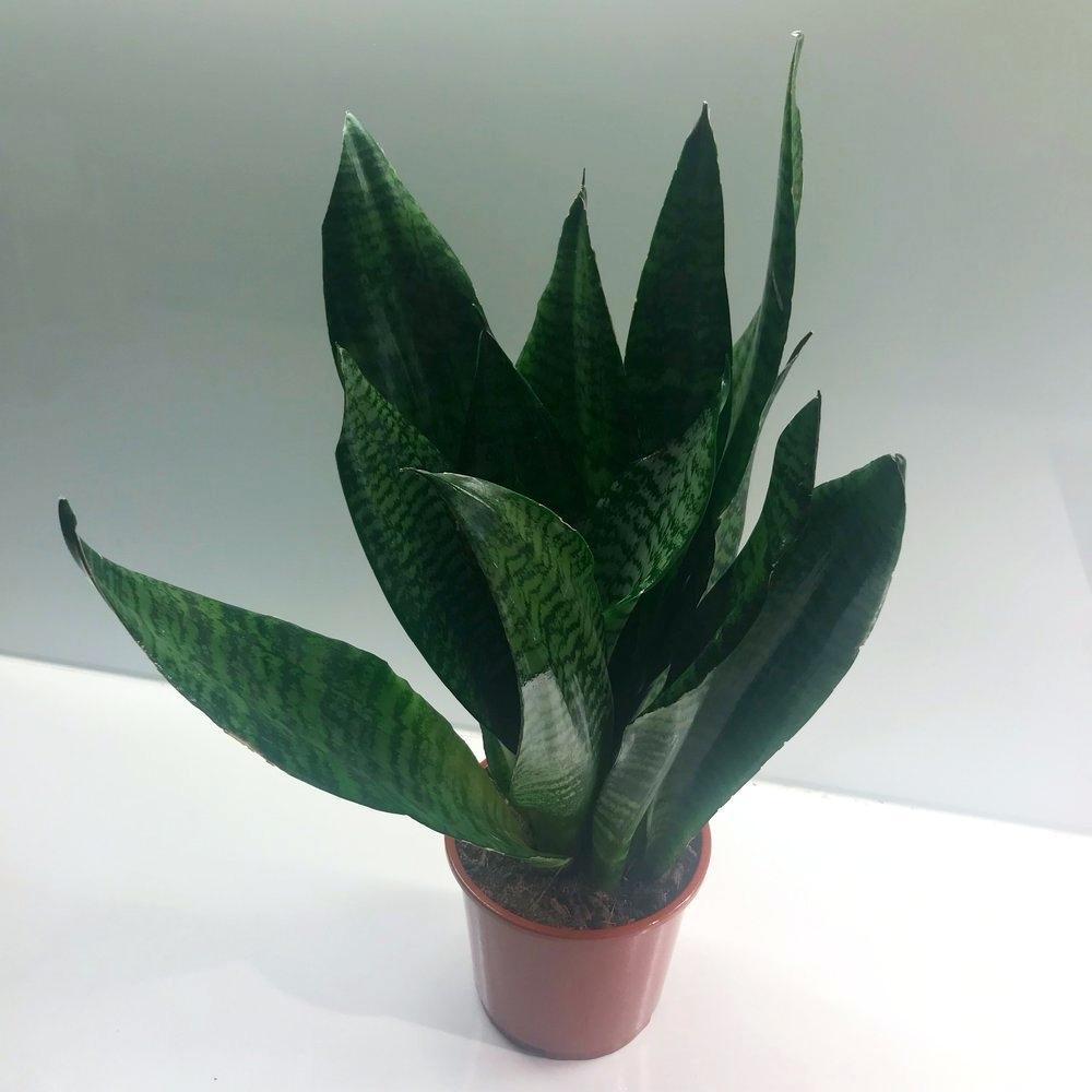 Black dragon Snake Plants have rich, shiny, dark green spear-shaped foliage. This hybrid Bird's Nest form of Snake Plant is small and compact. It's an unusual snake plant because the leaves are not variegated — a perfect size for a shelf, small table or bedroom nightstand.